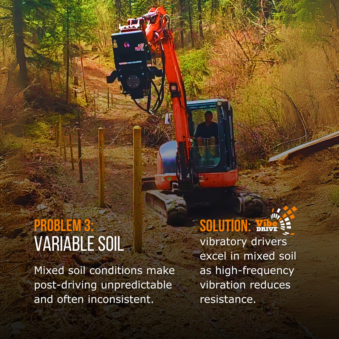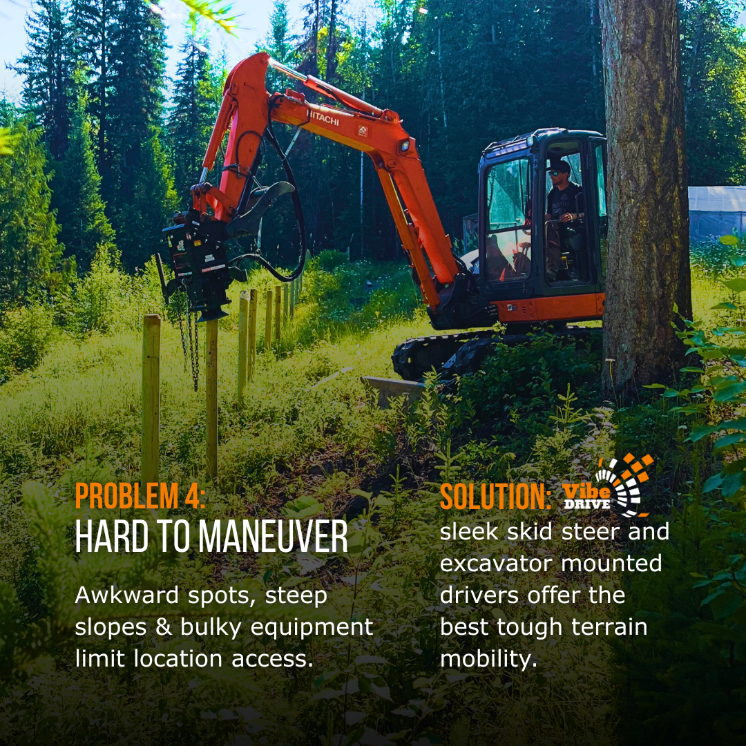 From steep slopes to mixed soils, post driving on uneven ground brings challenges that slow projects, increase labor, and compromise results.