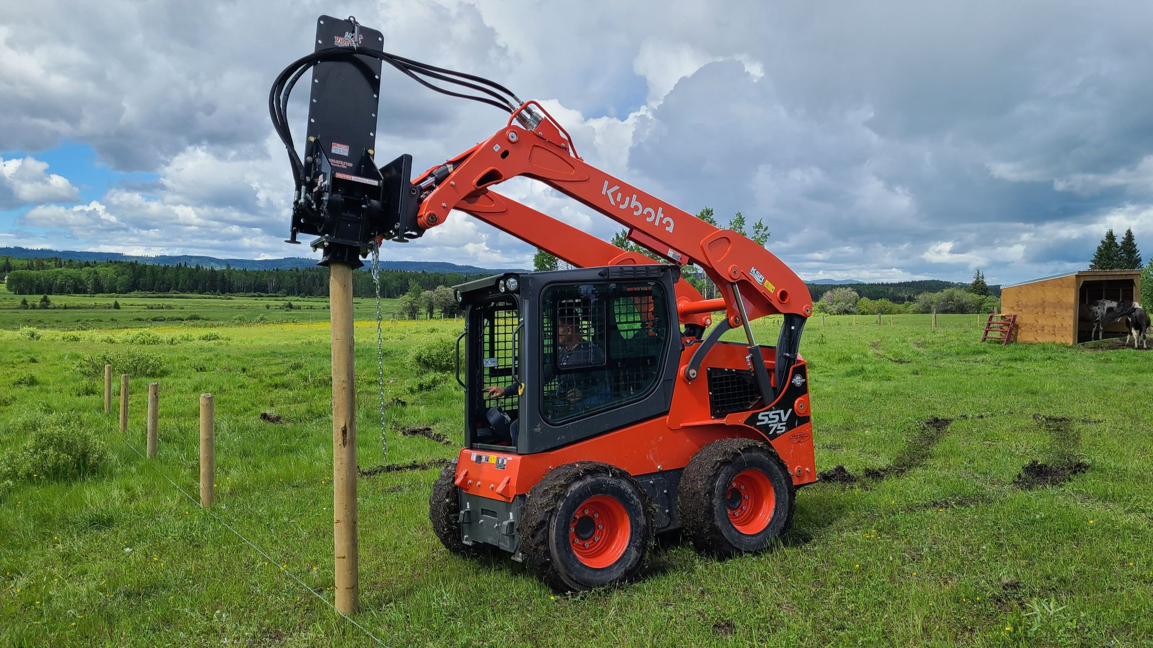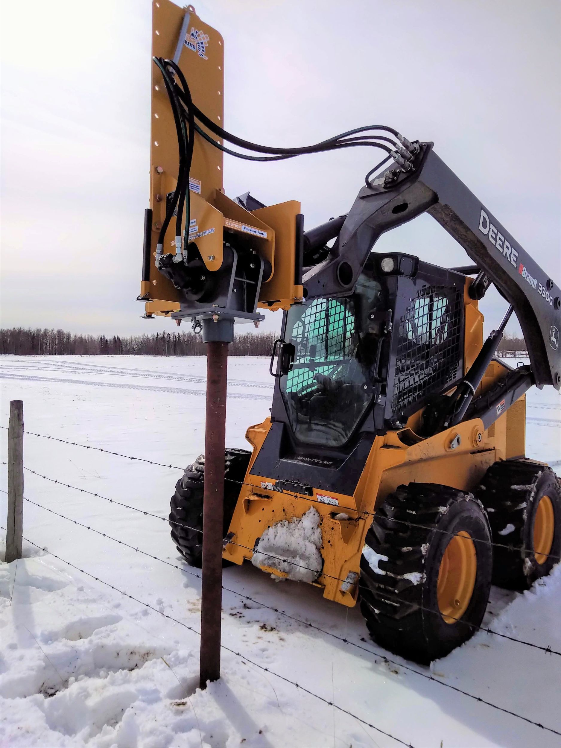 The Pole-Cat Vibrating Post & Pile Driver is not only easy to install on your skid steer of any size, but is also easy to adjust. This model can move up the extended frame to accommodate posts and piles up to 12+ feet in length. Vibe Drive’s equipment smoothly positions over top of the post and uses vibrations to drive it into the ground.